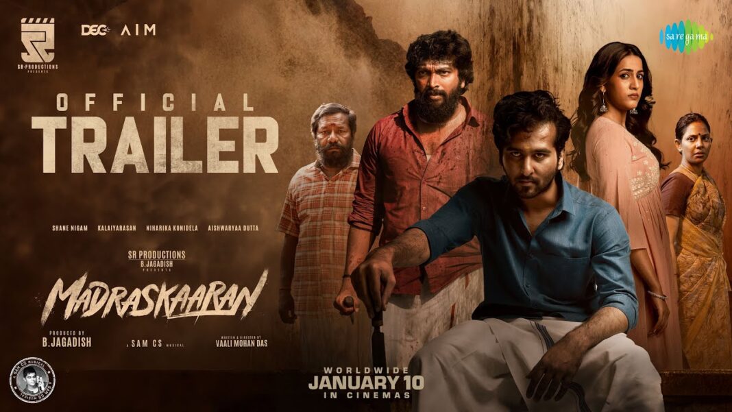 Madraskaaran has Vaali Mohan Das as the director. B. Jagadish, under SR Productions, has produced the film. It has Shane Nigam, Kalaiyarasan, Niharika Konidela, and Aishwarya Dutta as the main actors.